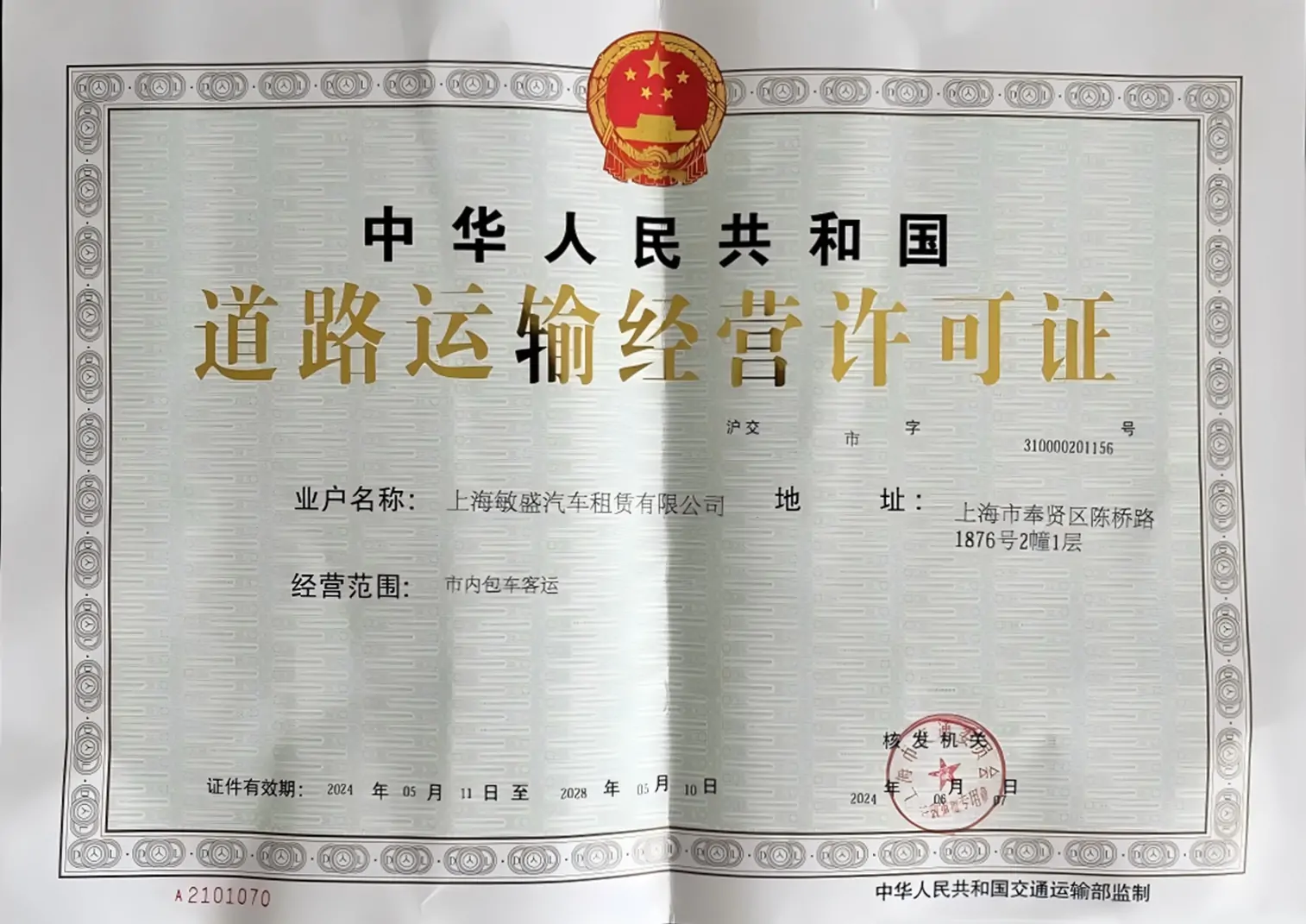 合法营运资质齐全,严格合规运营
